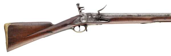 the banana shaped lock signed JORDAN, GR, surmounted by a royal crown and struck with the Board of Ordinance mark of an arrow, with a brass trigger guard and ramrod pipes, with iron sling-swivels and a 42 inch barrel, with a walnut full stock, brass butt and side plate, and a replaced ramrod