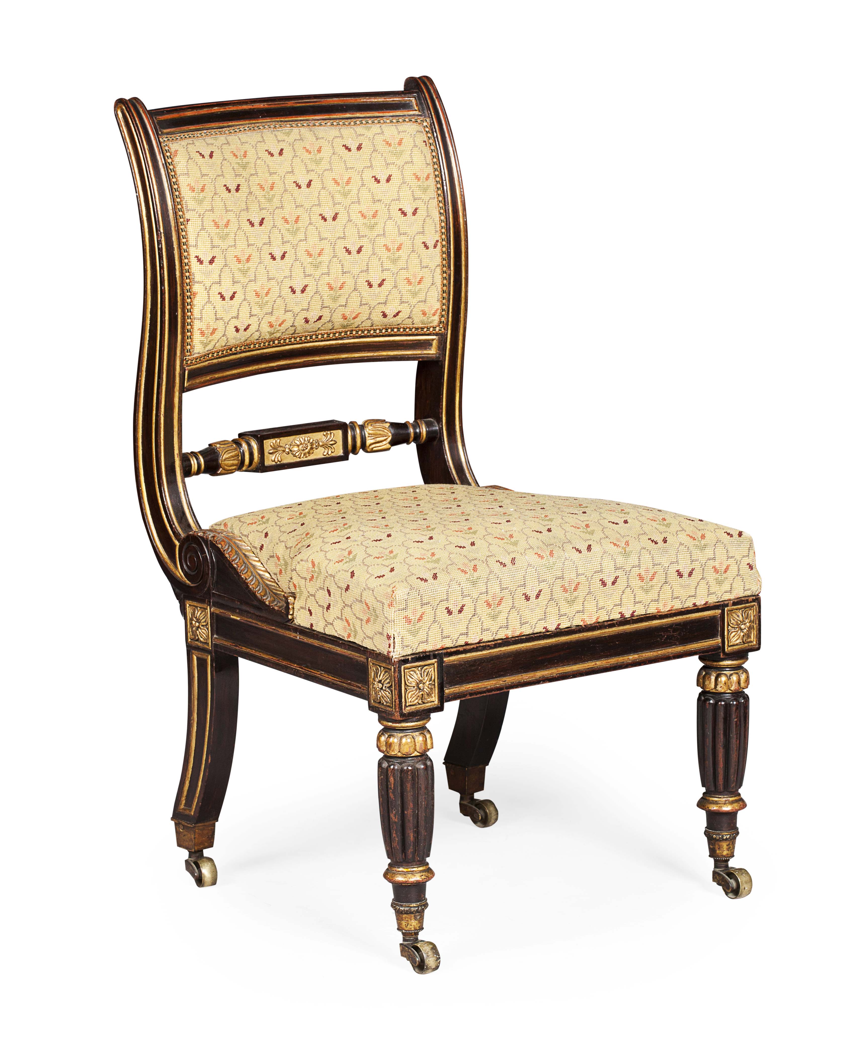 REGENCY SCUMBLED AND PARCEL GILT MAHOGANY SIDE CHAIR