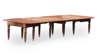 the rounded rectangular top with four leaf extensions, raised on twelve reeded tapered legs ending in brass caps and castors, the interior legs set back, bearing an engraved brass maker's plaque 'BUTLER'S PATENT NO 13 & 14 / CATHERINE ST. STRAND / LONDON'; the table extending to accommodate a possible two further leaf inserts, not present