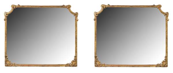 PAIR OF CONTINENTAL GILTWOOD AND GESSO OVERMANTEL MIRRORS