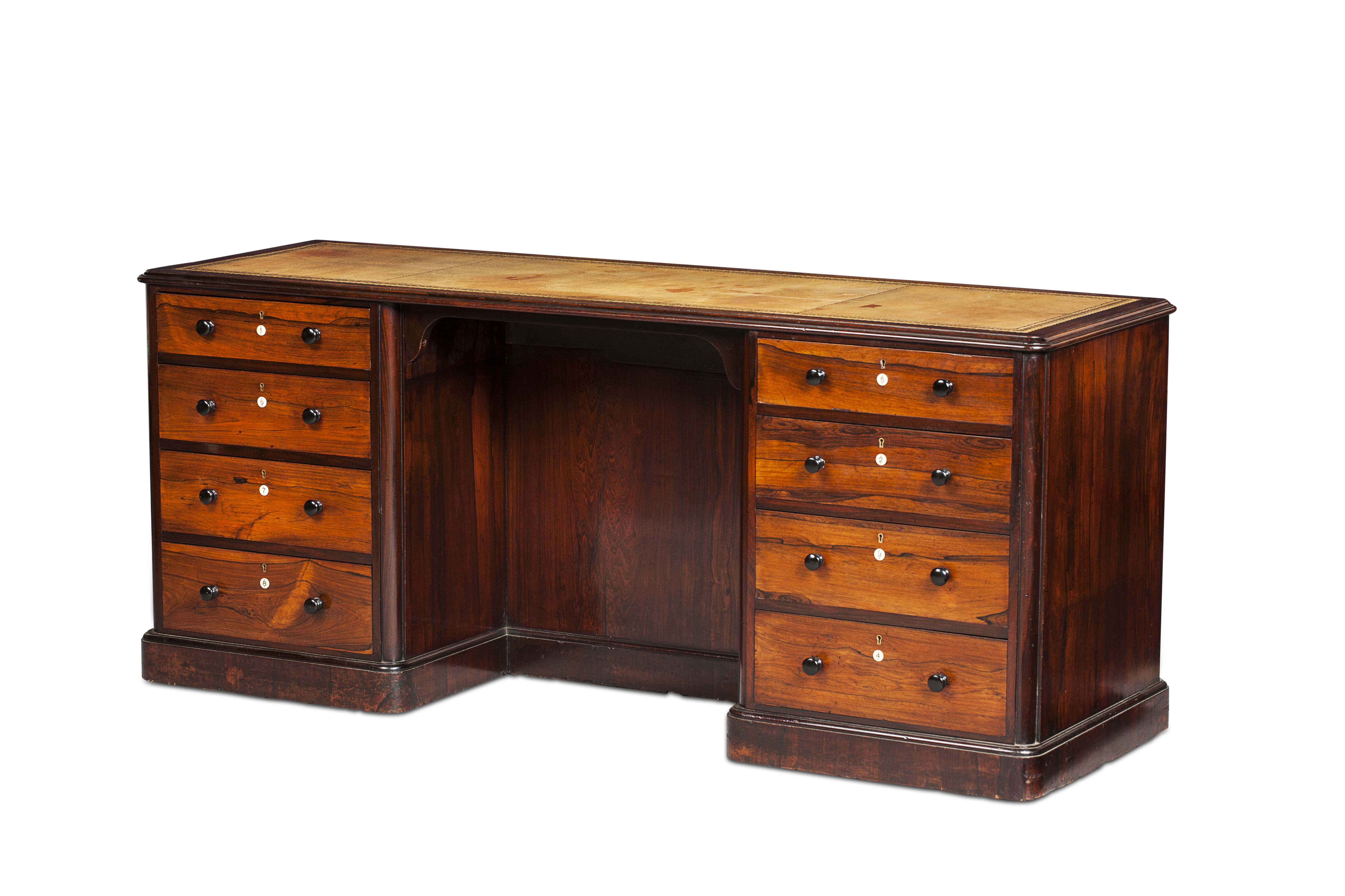 UNUSUAL EARLY VICTORIAN ROSEWOOD PEDESTAL DESK AND BOOKCASE