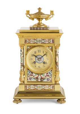 FRENCH CHAMPLEVÉ ENAMEL AND GILT METAL MANTEL CLOCK
