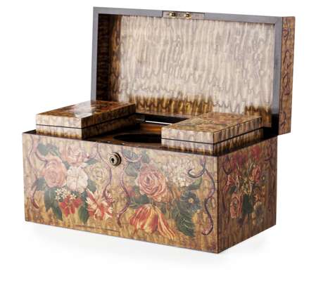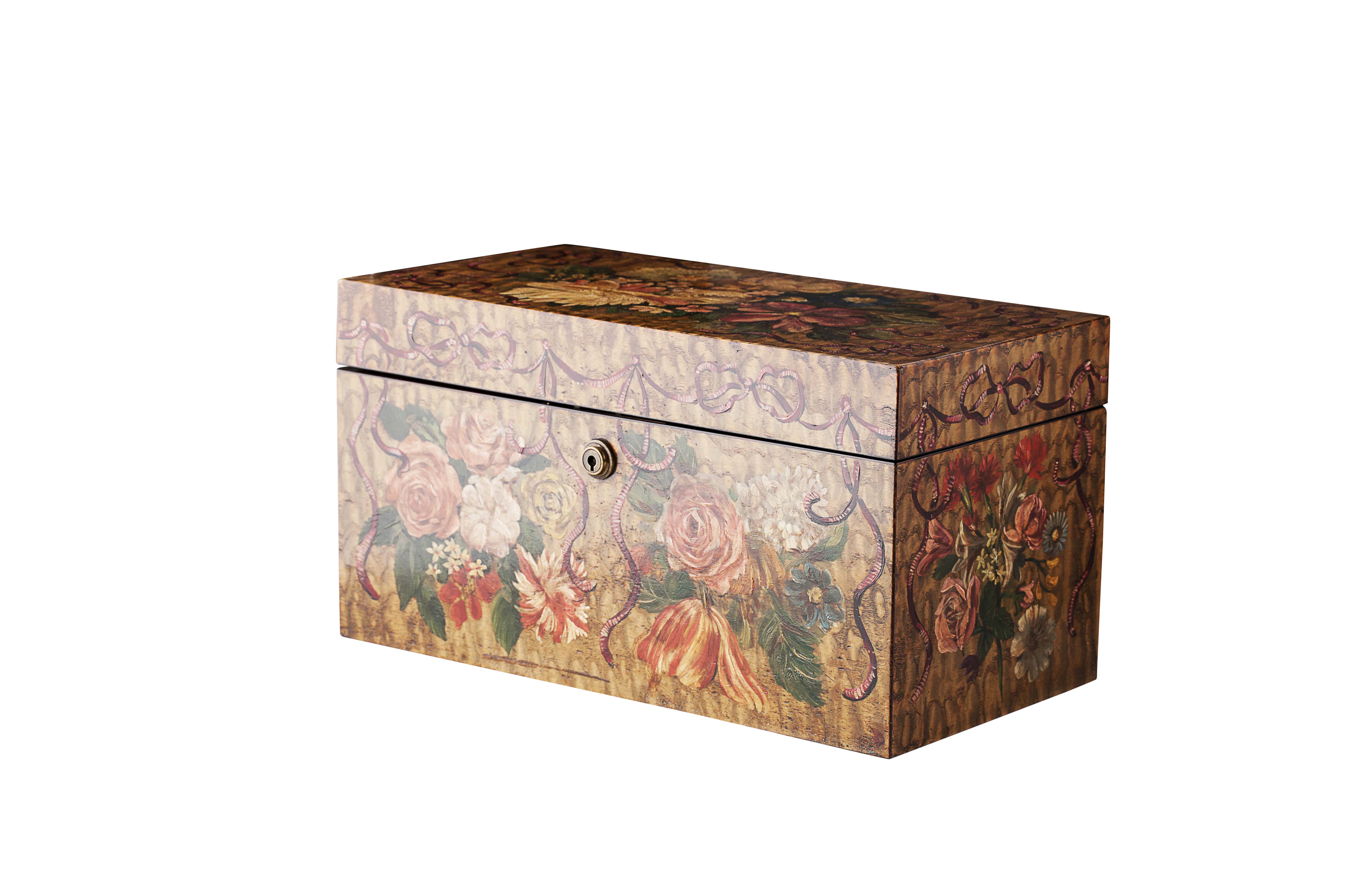 VICTORIAN PAINTED BURR ASH TEA CADDY