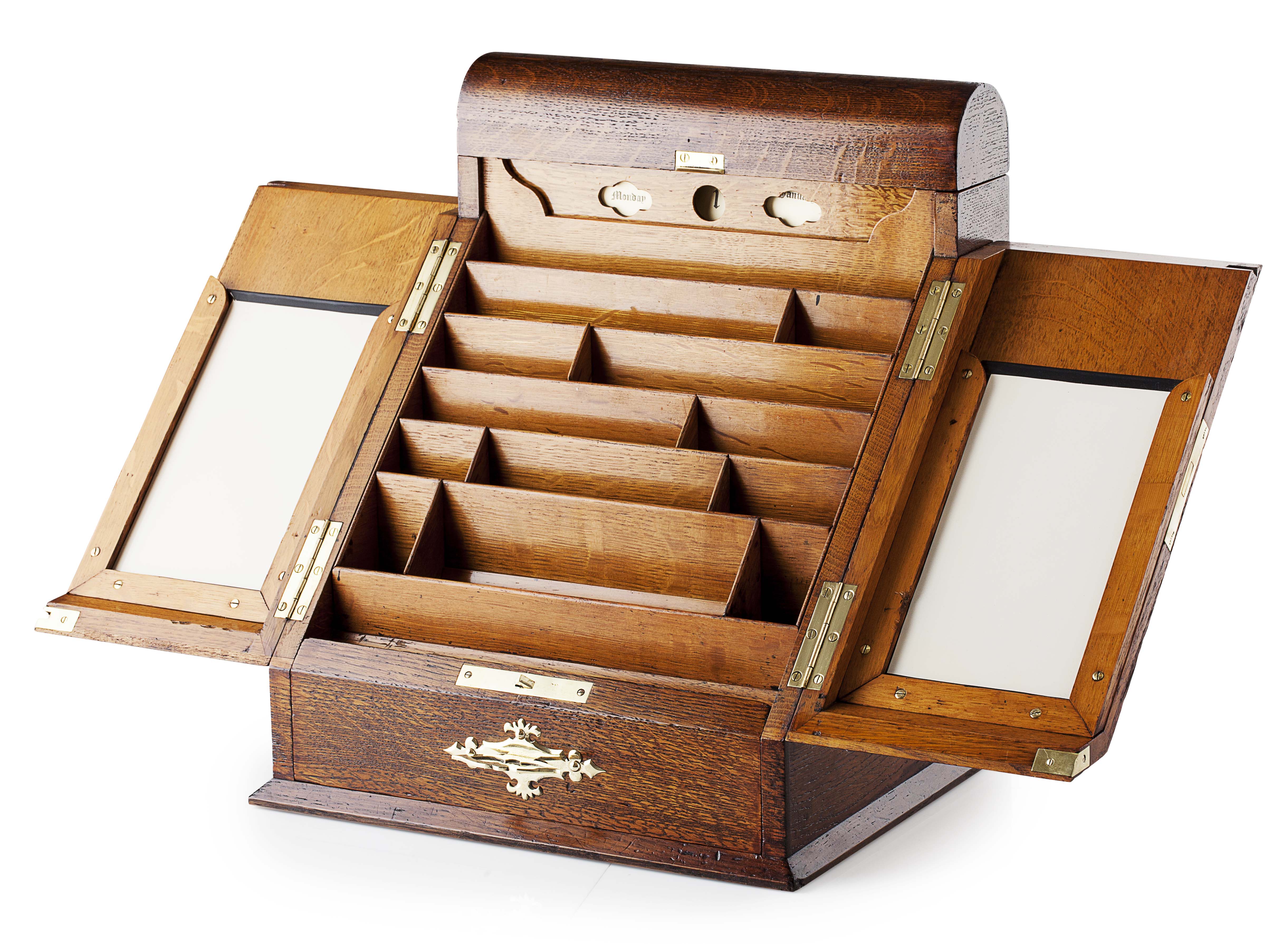 VICTORIAN PAINTED OAK AND BRASS MOUNTED LETTER BOX