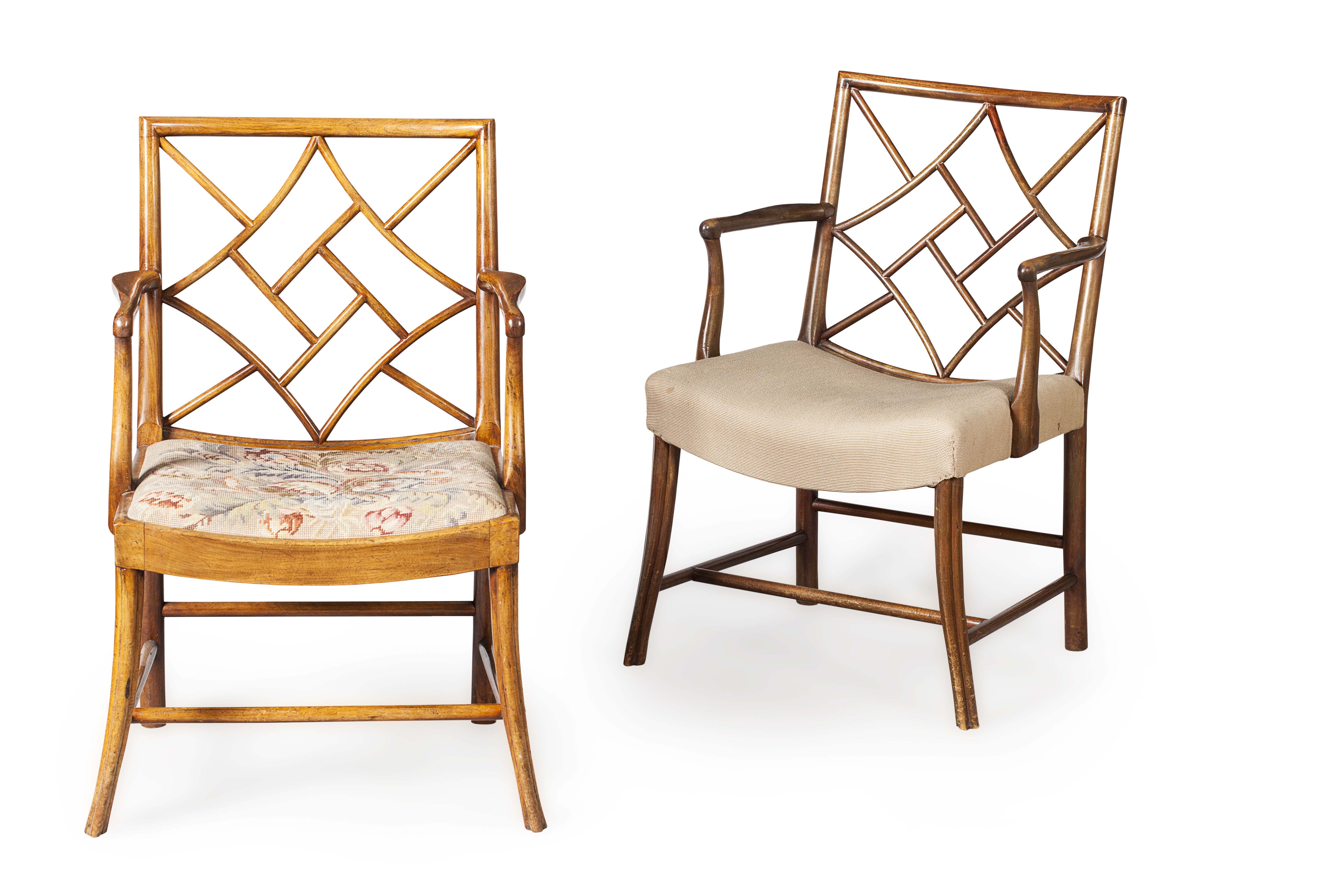 of typical form, one with a drop-in foliate needlework seat, the other with a stuffover seat (2)