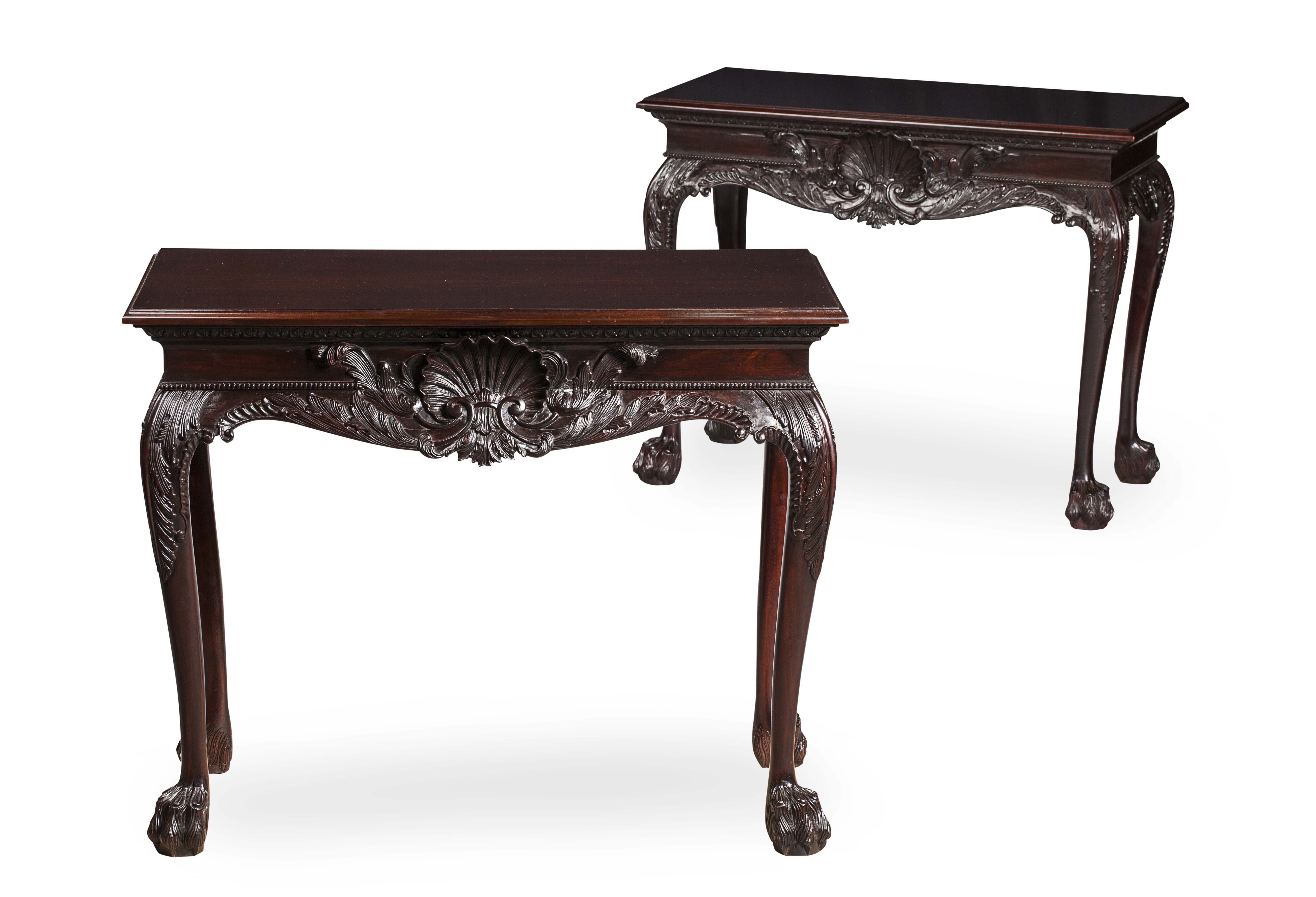 PAIR OF IRISH GEORGE III STYLE MAHOGANY SIDE TABLES BY HICKS, DUBLIN