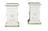 the moulded square tops above sides cast in relief with masks and putti, with spiral carved corners, on acanthus and ivy cast plinth base (2)