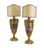 converted from candelabra, each with a footed baluster form marble base mounted with gilt bronze entwined snake handles and laurel leaf mounts, on a chamfered square ormolu base, with a shade (2)