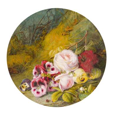 STILL-LIFE OF FLOWERS ON A GRASSY BANK