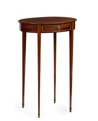 GEORGE III MAHOGANY AND SATINWOOD OVAL WORK TABLE
