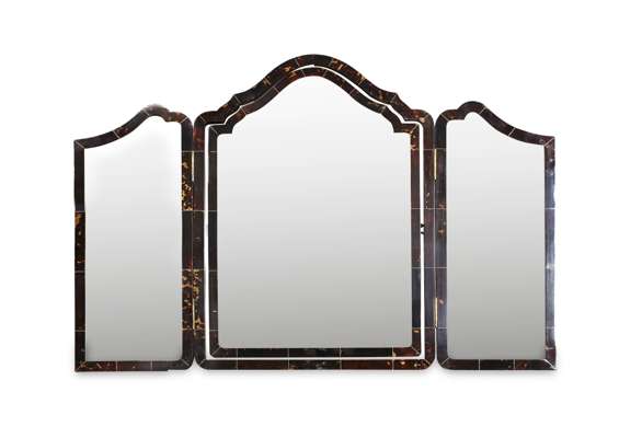 QUEEN ANNE STYLE TORTOISESHELL TRIPLE DRESSING TABLE MIRROR