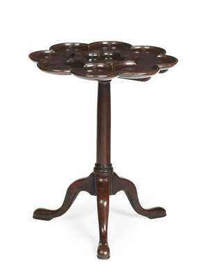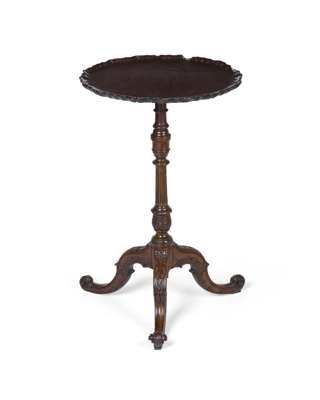 GOOD IRISH GEORGE III MAHOGANY PIECRUST TILT TOP TEA TABLE