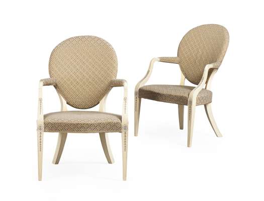 GEORGE III CREAM AND GREEN PAINTED ARMCHAIR