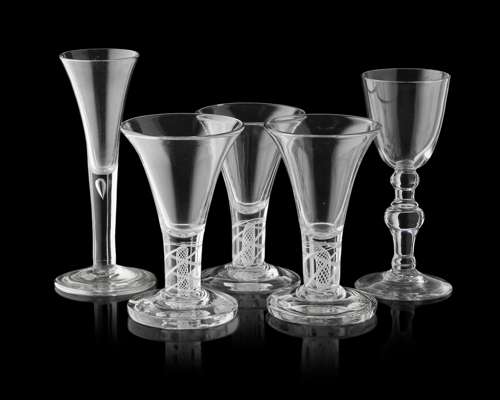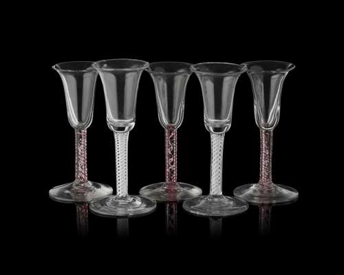 GROUP OF ENGLISH DOUBLE TWIST STEM WINE GLASSES