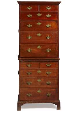 LATE GEORGE III MAHOGANY DWARF CHEST-ON-CHEST, POSSIBY IRISH
