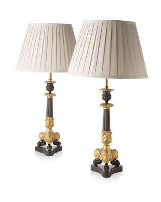 PAIR OF REGENCY PATINATED AND GILT BRONZE LAMPS