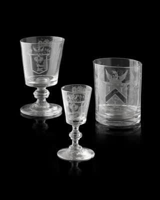 THREE COMMEMORATIVE ENGRAVED GLASSES FOR THE WORSHIPFUL COMPANY OF BLACKSMITHS