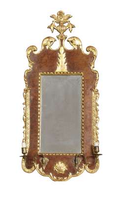 PAIR OF GEORGE I STYLE WALNUT AND GILT GIRONDOLE MIRRORS