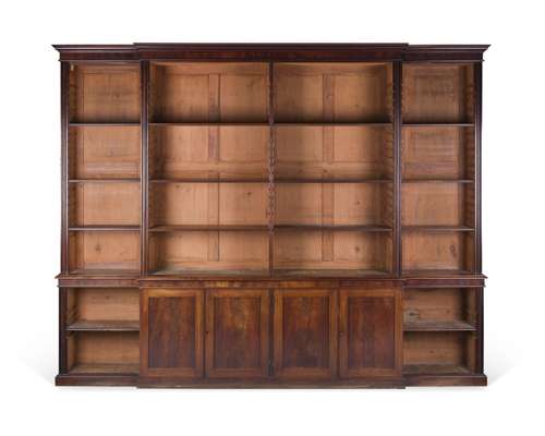 GEORGE III MAHOGANY BREAKFRONT OPEN BOOKCASE