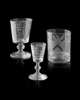 all bearing the motto "BY HAMMER & HAND ALL ARTS DO STAND', comprising a rummer engraved with the monogram 'JA' and the Blacksmiths heraldic shield, 14cm high; a tumbler engraved with the monogram 'WB', thistles, roses, and the Blacksmiths heraldic shield, 11cm high; and a cordial glass with engraved monogram JA and the Blacksmiths heraldic shield, 10cm high (3)