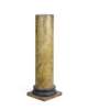 of plain cylindrical form, painted yellow with a black moulded base, raised on a square plinth