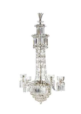 VICTORIAN CUT GLASS FOUR LIGHT WATERFALL CHANDELIER ATTRIBUTED TO F&C OSLER