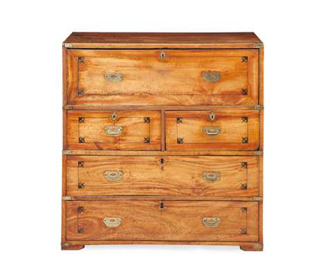 TEAK CAMPAIGN SECRETAIRE CHEST