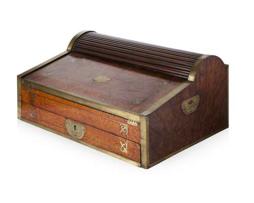 BURRWOOD AND BRASS MOUNTED CAMPAIGN WRITING SLOPE