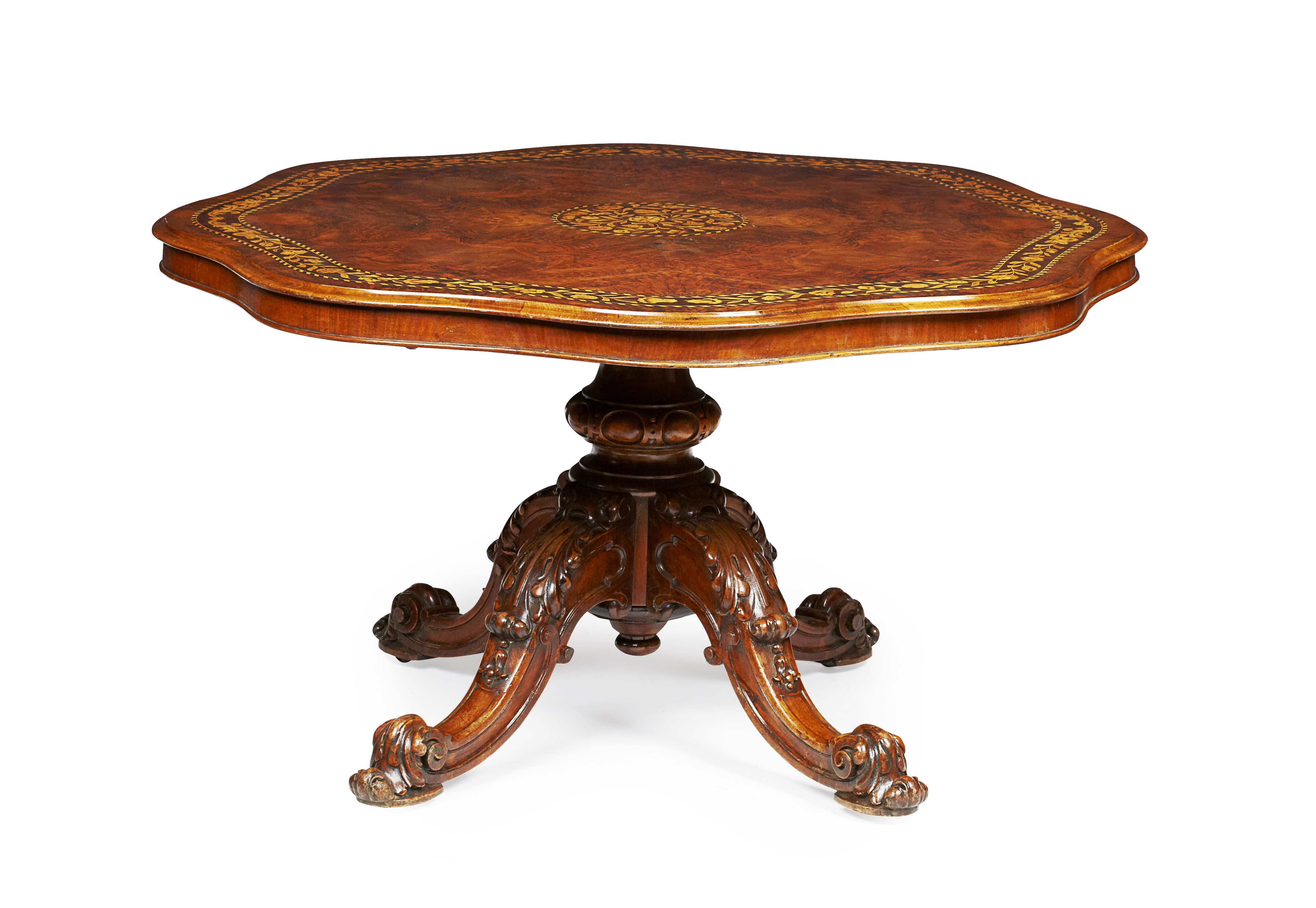 VICTORIAN WALNUT AND MARQUETRY BREAKFAST TABLE