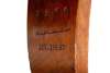 the low scrolled upholstered end and back over a long upholstered seat, raised on short turned legs, raised on brass caps and castors, the leg stamped 'HOWARD & SONS LTD BERNERS STREET'