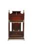 the moulded panel back with brass finials and a brass rail, above a moulded base raised on brass ogee bracket feet