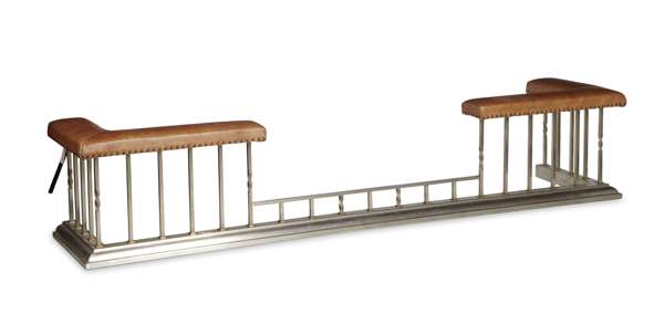LARGE STEEL, BRASS AND LEATHER UPHOLSTERED CLUB FENDER