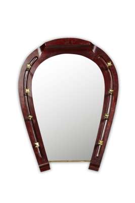 MAHOGANY HORSESHOE SHAPE MIRROR COAT RACK