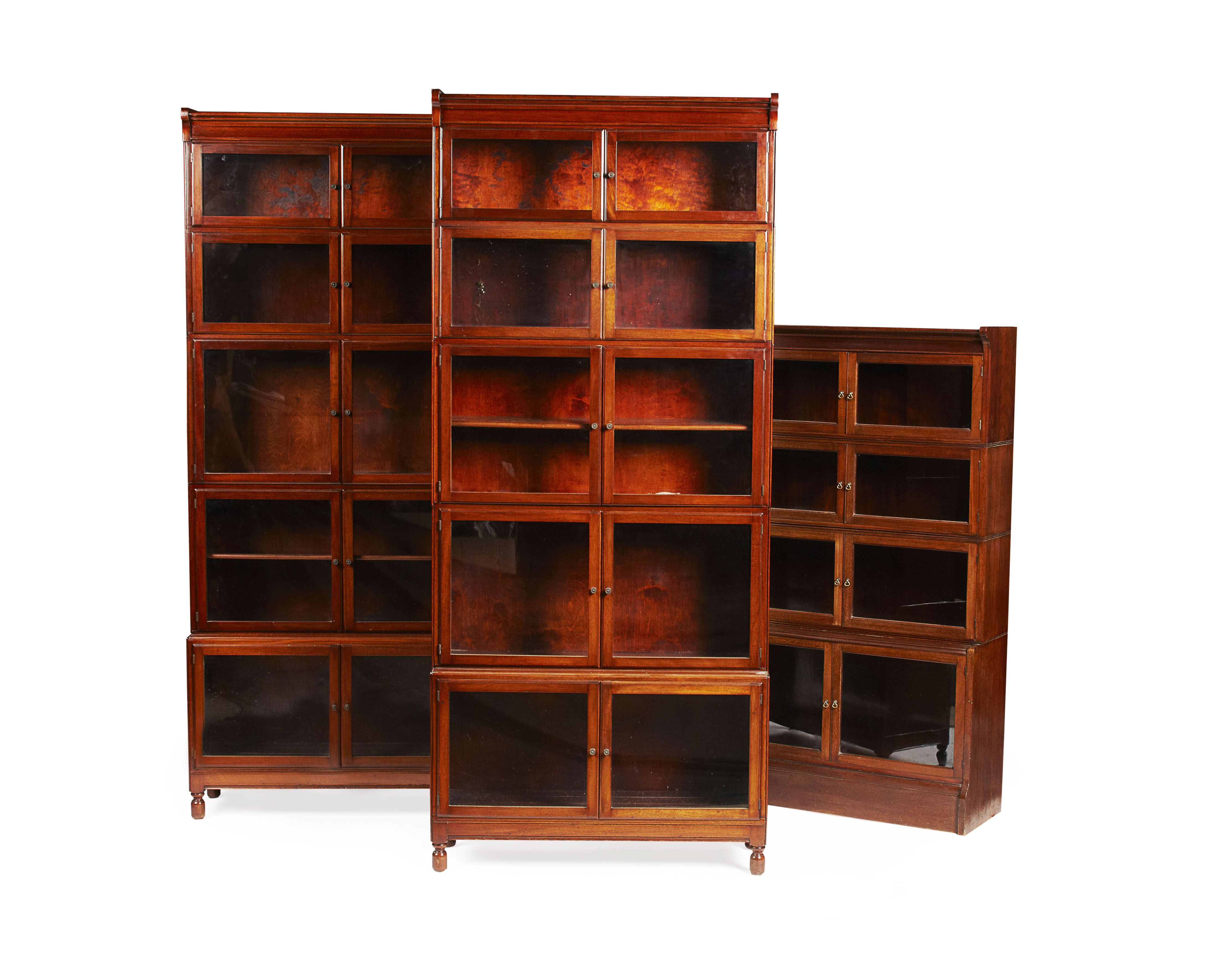 THREE MAHOGANY GLOBE WERNICKE STYLE STACKING BOOKCASES
