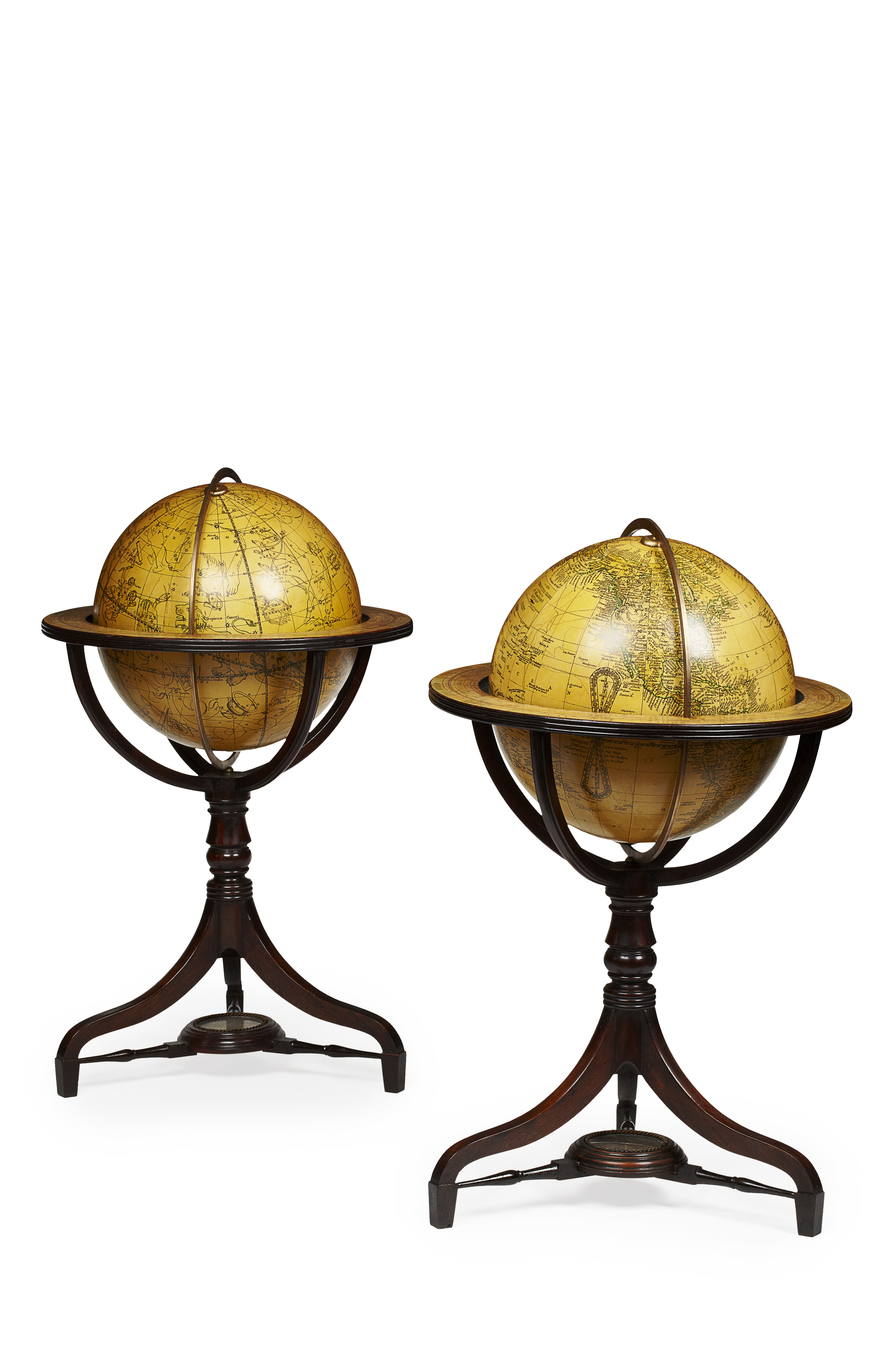 PAIR OF REGENCY STYLE CELESTIAL AND TERRESTIAL LIBRARY GLOBES