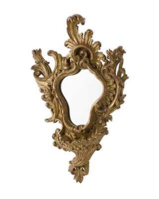 ornately carved in the rococo style, the shaped mirror plate above a shell carved reservoir
