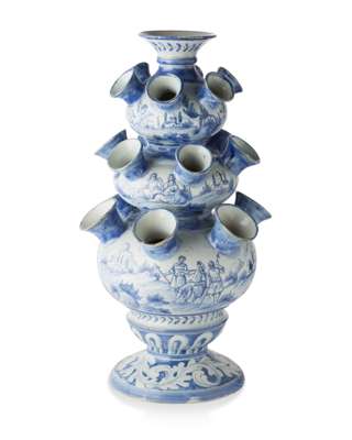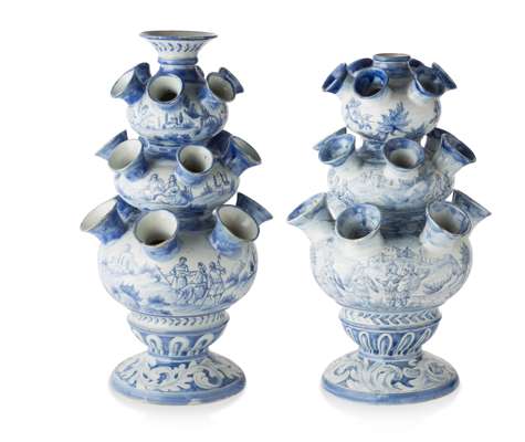 TWO FAIENCE BLUE AND WHITE TULIPIERE VASES
