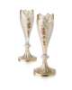 of bud form with barbed rims, knopped stems and circular feet, with alternating strawberry-cut and painted panels on a white ground with gilt highlights (2)