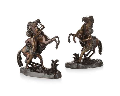 TWO BRONZE MARLEY HORSE FIGURE GROUPS