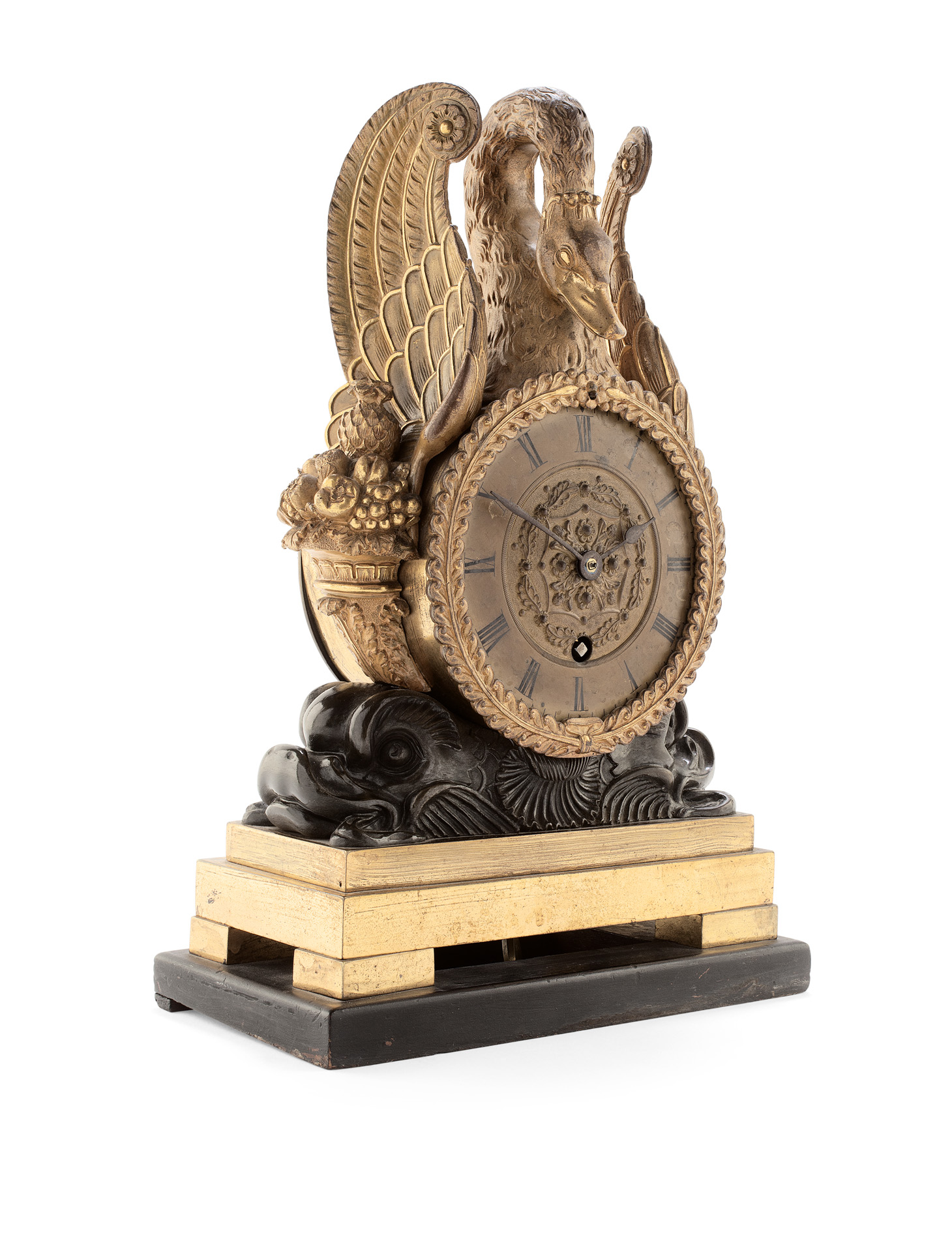 FRENCH EMPIRE GILT AND PATINATED BRONZE MANTEL CLOCK
