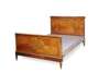 the headboard with a quarter veneered panel flanked by ribbon tied oval inlay panels, with neoclassical gilt bronze mounts; the footboard with similarly inlay, raised on tapered legs