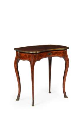 LOUIS XVI STYLE KINGWOOD, AMARANTH, AND AMBOYNA PARQUETRY SIDE TABLE