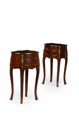 PAIR OF LOUIS XV STYLE KINGWOOD PARQUETRY BEDSIDE TABLES
