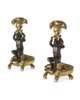 PAIR OF GILT AND PATINATED BRONZE FIGURAL CANDLESTICKS