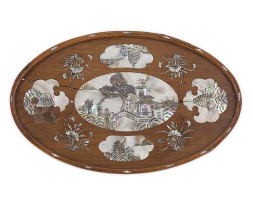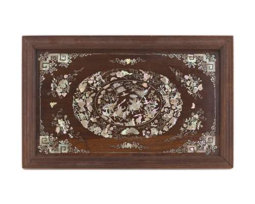 TWO CHINESE HARDWOOD AND MOTHER-OF-PEARL INLAID TRAYS
