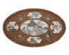 the first rectangular with a moulded border, the oval reserve depicting equestrian figures, enclosed by flowers, fruit, butterflies and bats, 42cm long, 26.5cm wide; the other oval with a depicting figures in a walled garden with buildings, 45cm long, 28cm wide (2)
