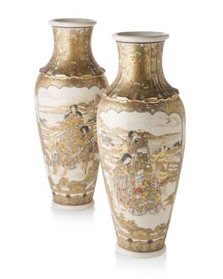 LARGE PAIR OF JAPANESE SATSUMA VASES