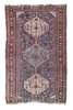 the indigo field with three ivory and blue stepped medallions, within narrow rust hatched border