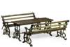 PAIR OF VICTORIAN CAST IRON GARDEN BENCHES AND TABLE