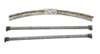 comprising an arched George III tester bed part pelmet, 201cm long; and a pair of Regency pelmets, 202cm long; all painted with scrolling foliate motifs (3)
